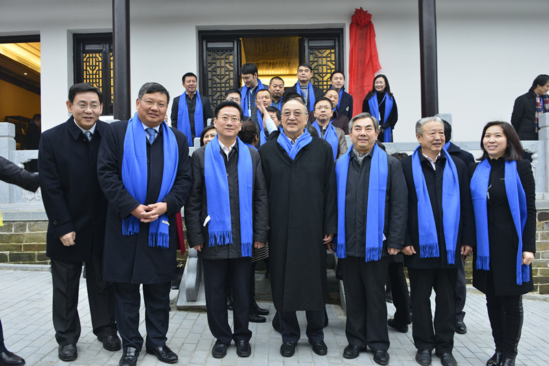 省政协主席杨松、市政协主席吴超、联想集团名誉主席柳传志、均瑶集团总裁王均豪、奥山集团董事长邬剑刚、华敏投资有限公司董事长熊华敏共同为“现代儒商研究会”揭牌!
