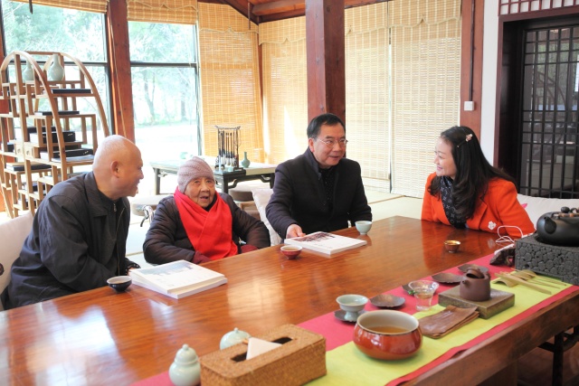 相隔百余年后,老人一家与武汉文史专家刘谦定老师(左一)、书院陈雨倩秘书长(右一)共忆峥嵘岁月。一个个熟悉的名字,一段段热血的历史被提及,时光已逝,记忆不老。