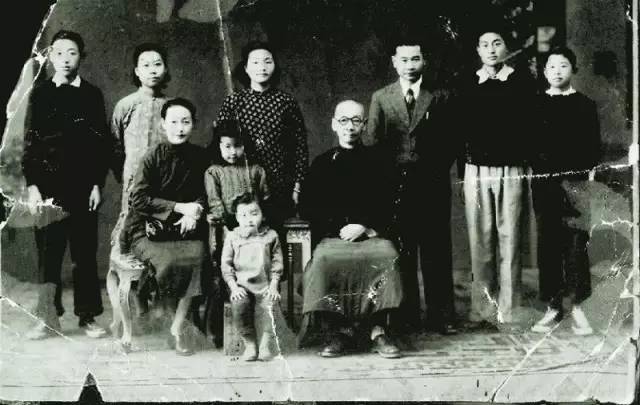 抗战胜利后,李声英(后排左二)与父母及兄弟姐妹团聚,并与陈祖裕(后排右三)结婚。