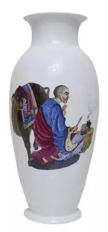 粉彩精瓷瓶《仿明代丁云鹏·十八罗汉图》之《诺讵罗尊者图》,陈列瓶(孤品)。曾参加第二届世界佛教论坛巡展。期间,数十位世界著名高僧大德亲临现场观摩并予以法露沐浴、喜悦开光,无上法力充盈其中。