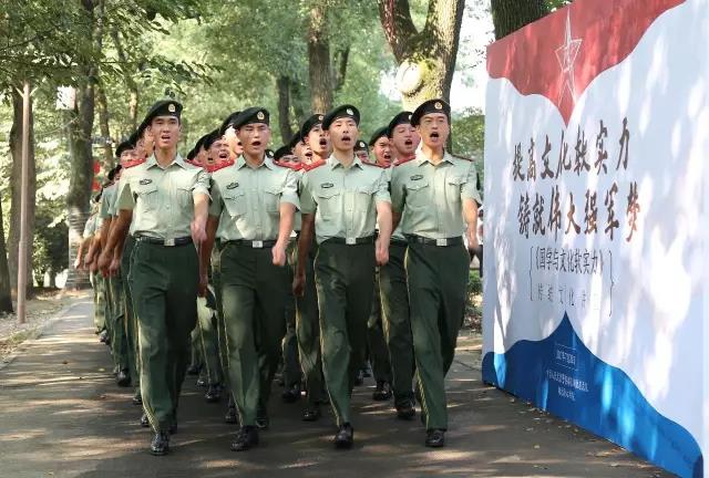 80名武警战士迈着整齐的步伐铿锵有力地向书院走来。