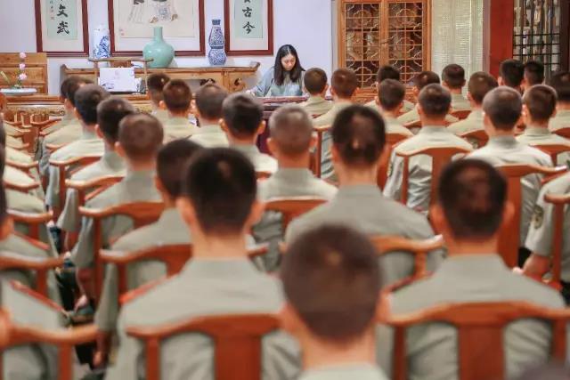 悠扬舒缓的古琴声,古朴典雅的讲堂,让官兵们置身于清心淳静之中。