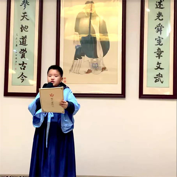 张希晨同学家长:不知不觉中,学习论语已经一年多了,时光就像画面在眼前闪过。我感受到孩子的成长和变化,国学经典给孩子们打开一个全新的世界,陶治情操,心清气静。国学教会男孩子思想像大海一样深邃,像天空一样开阔;教会女孩子自尊自爱、善良贤慧。死读万卷书,那是书呆子;空行万里路,那是贩夫。亲近圣贤,这样的孩子才是人格饱满,人性光明。
