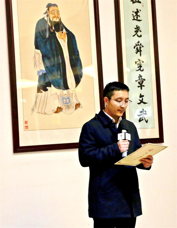 学生代表彭胤轩:一年多的学习,我最大的感受就是爱上了《论语》、崇拜孔子、敬重曾老师、喜欢我们这个大集体。学习《论语》后,我更懂得了仁、义、礼、智、勇,在生活中每当我想任性的时候,都会有个警钟敲打我,那就是《论语》,我是孔子的弟子,我要做个仁人;学习《论语》后,我体会到了学习的乐趣,我佩服他“君子食无求饱、居无求安”的精神,一个内心世界丰富的人处处都能知足,都能找到属于自己的乐趣。