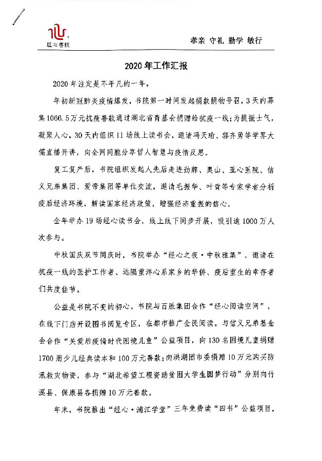 2020年经心书院工作总结